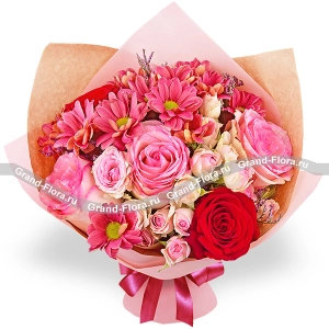 Солнечные объятия - букет из желтых хризантем и гвоздик