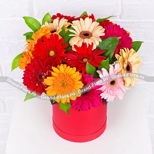 Нежность дня - шляпная коробка с розовыми кустовыми розами