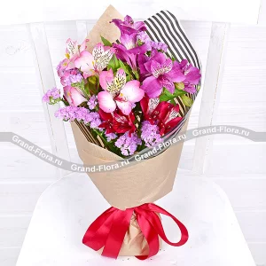 Небо в твоих глазах - букет-комплимент из герберы, хризантемы и альстромерии